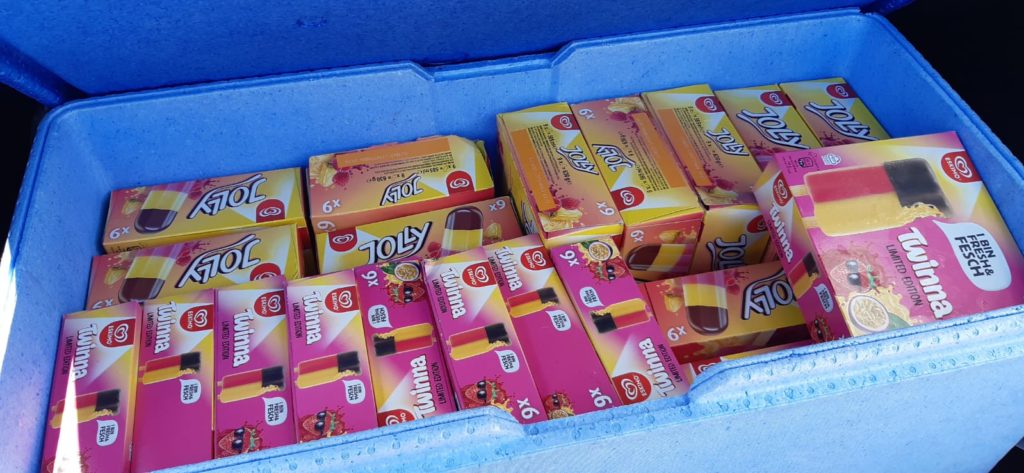 Der Spaß beim Baumsägewettbewerb kam nicht zu kurz und die Kinder bekamen ein Gratis-Eis von unserem Vizebürgermeister Rene Wöckinger.